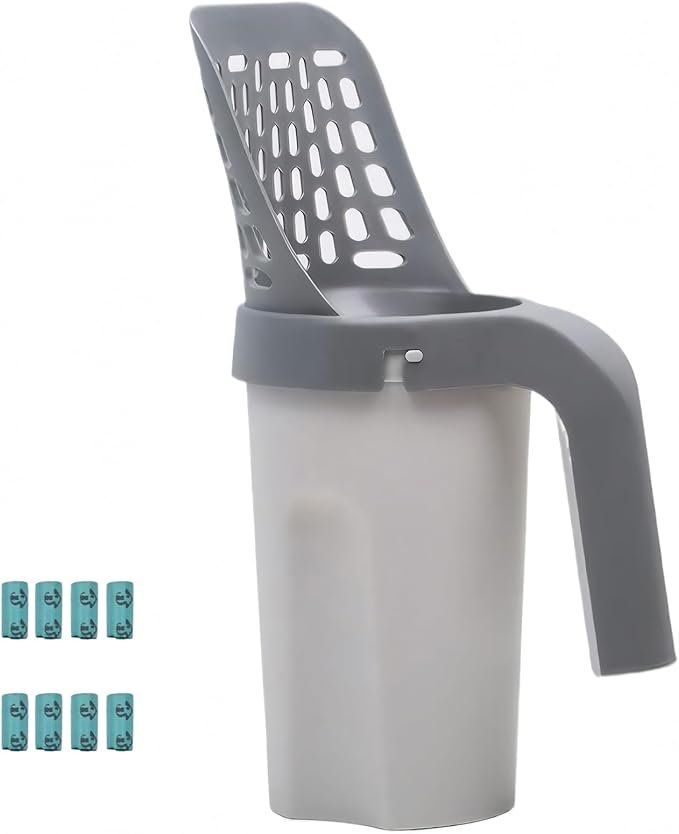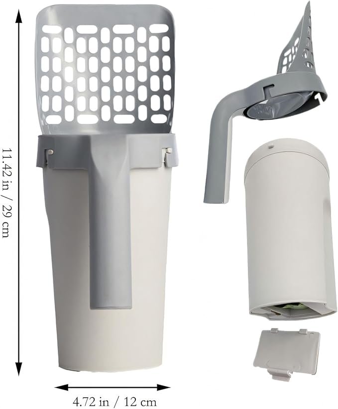 • ออกแบบแบบถอดแยกได้: ที่ตักทรายแมวมีด้ามจับและกรวยรวมถึงกระบอกเก็บของเสียที่สามารถถอดแยกออกได้